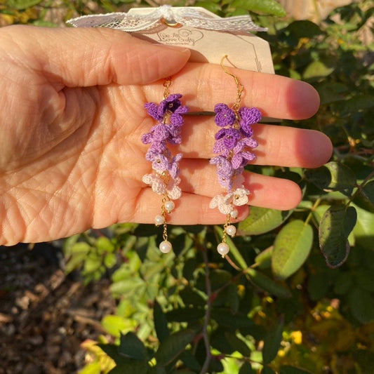 4 shades of Purple ombre flower cluster crochet dangle earrings/Microcrochet/14k gold/gift for her/Knitting handmade jewelry