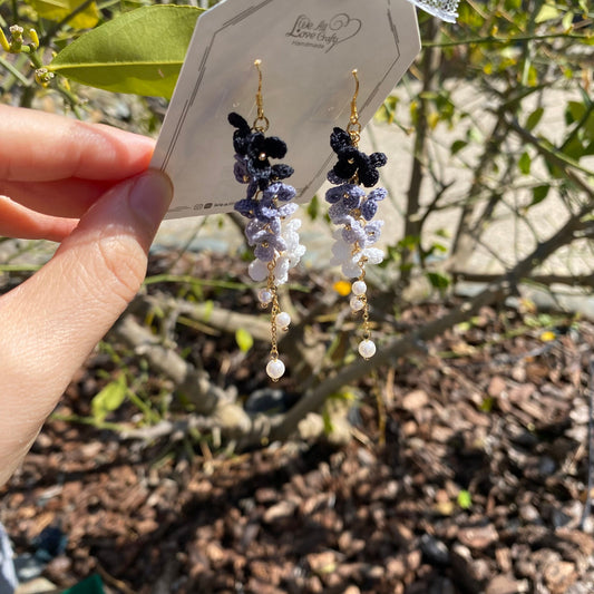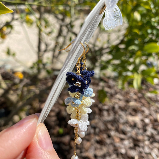 4 shades of Nautical navy ombre flower cluster crochet dangle earrings/Microcrochet/14k gold/gift for her/Knitting handmade jewelry